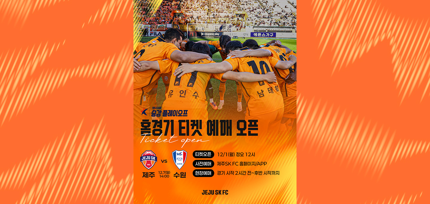 🍊 𝑆𝑇𝐴𝑅𝑇𝐼𝑁𝐺 𝐿𝐼𝑁𝐸 𝑈𝑃 🧡 [승강 플레이오프 1차전] ⏰ 12/3(수) 19시 00분 🆚️ 제주 vs 수원 🏟️ 수원월드컵경기장 #제주SKFC #JEJUSKFC -
