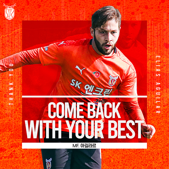 코스타리카 대표팀 선수인 아길라르는 지난해 인천을 떠나 제주에 입단했다. 올 시즌까지 제주 유니폼을 입고 총 29경기에 출전해 4골 6도움을 기록했다.