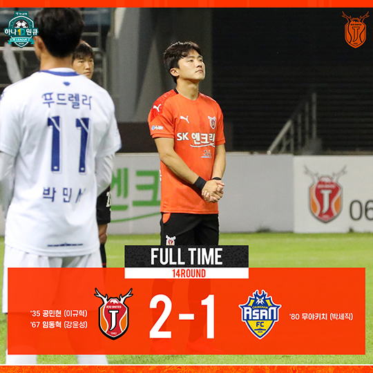 제주는 남은 시간 충남아산의 공세를 막아내며 승점 3점을 지켰다.