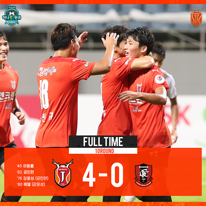 교체 선수들도 골 퍼레이드에 가세했다. 후반 31분 강윤성이 페널티박스 정면에서 절묘한 감아차기로 격차를 벌렸다. 4분 뒤에는에델이 교체 투입되자마자 환상적인 칩샷으로 부천의 의지를 꺾었다.
