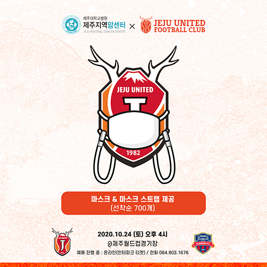한편 제주는 제주대학교병원 제주지역암센터와 함께 이날 입장하는 관중을 대상으로 마스크와 마스크 스트랩을 선착순 700개를 제공한다.
