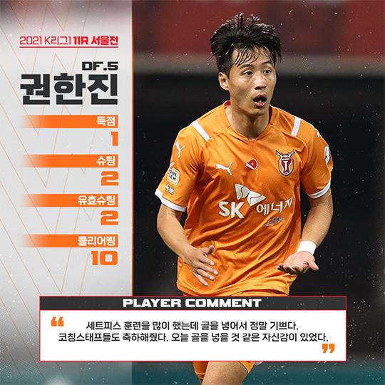 경기 후 권한진은 "오늘 이기면 상위권으로 도약하는 중요한 승부처였다. 상대 라인업을 보고 당황하긴 했다. 이런 경기일수록 더 집중하자고 했다. 초반 실점을 허용했지만 늘 하던대로 하자고 했던게 주효했다"라고 말했다.