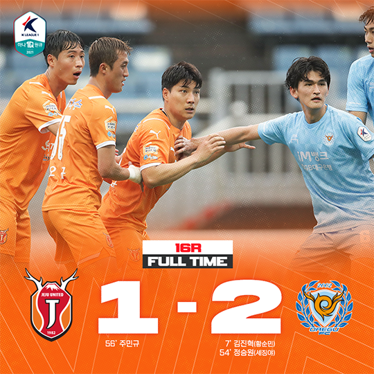 제주는 16일 오후 2시 제주월드컵경기장에서 대구와의 열린하나원큐 K리그1 2021 16라운드 홈 경기에서 1-2로 패배했다.