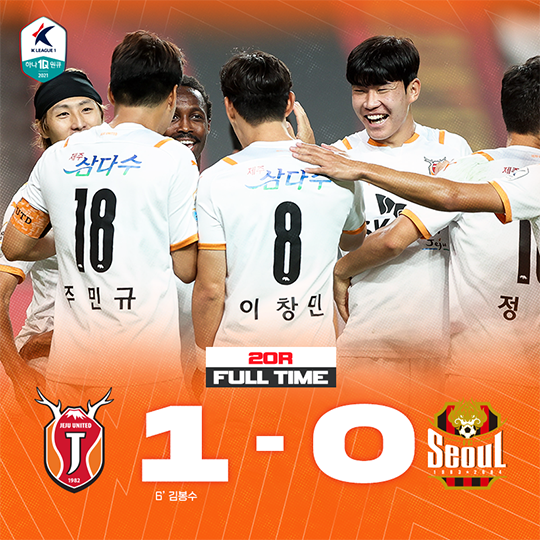 제주는 18일 서울월드컵경기장에서 열린 FC서울과의 하나원큐 K리그1 2021 20라운드 연기 경기에서 전반 6분 나온 김봉수의 골로 1-0 승리를 했다. 이 경기 전까지 12경기 연속 무승(7무 5패)의 부진을 겪었던 제주는 13경기 만에 승리했고 승점 28점으로 8위가 됐다.