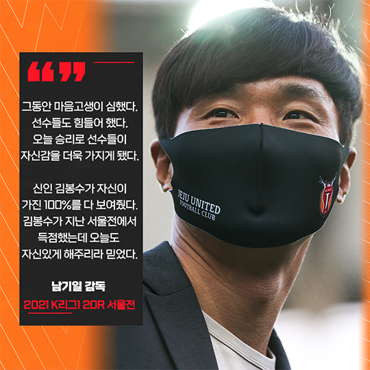 제주는 12경기 무승을 하면서 충분히 이길 경기를 놓친 적도 있었다. 남기일 감독은 지난 경기들을 떠올리면서 “아직 시즌 중이라 말하기 조심스럽지만, 선수들도 사람이라 실수한다. 잘하다 몇 분 남겨놓고 실점도 했다. 그런 실수 줄여가면서 왔다. 오늘도 실수 줄이면서 승리를 했다”고 했다.