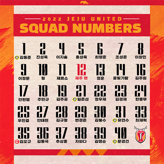 제주유나이티드(이하 제주)가 2022시즌 선수단 배번을 공개했다.
