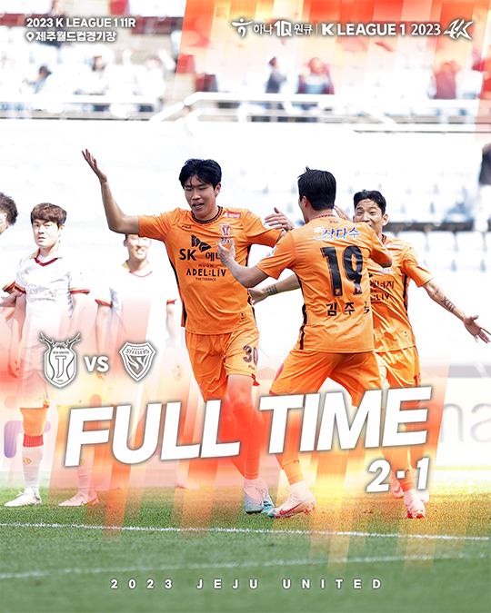 제주는 5월 6일(토) 오후 2시 제주월드컵경기장에서 열린 하나원큐 K리그1 2023 11라운드 홈 경기에서 포항에 2-1 역전승을 거뒀다. 전반 23분 백성동에게 선제골을 허용했지만 후반 3분 하창래의 자책골과 후반 10분 김봉수의 결승골을 앞세워 경기를 뒤집었다.