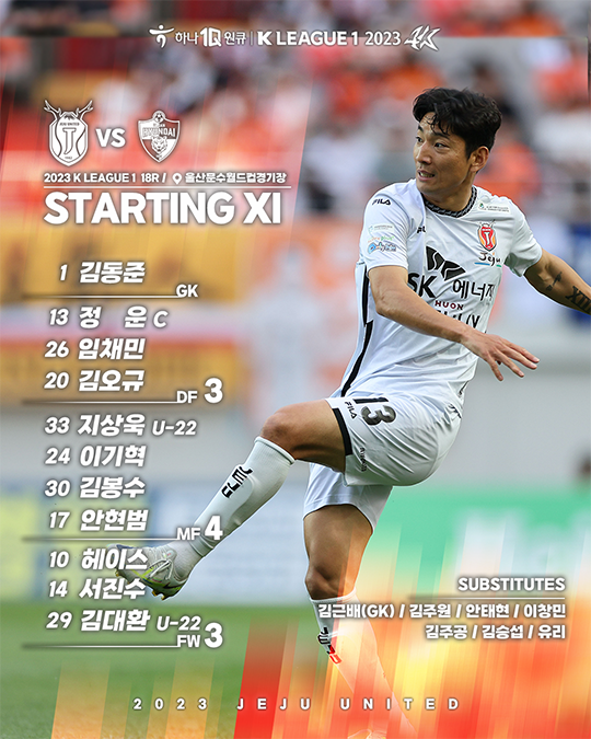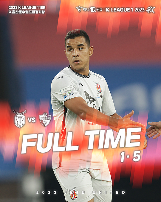 제주는 6월 10일(토) 오후 6시 울산문수축구경기장에서 열린 울산 현대와의 하나원큐 K리그1 2023 18라운드 원정경기에서 1-5로 패했다.