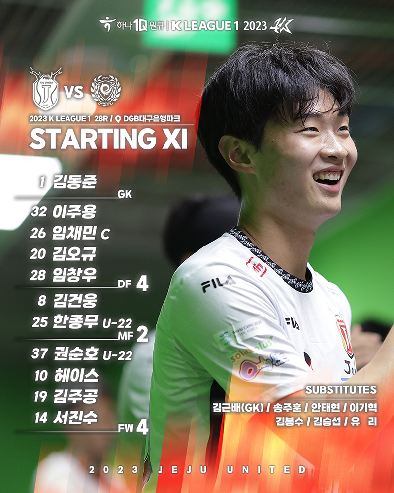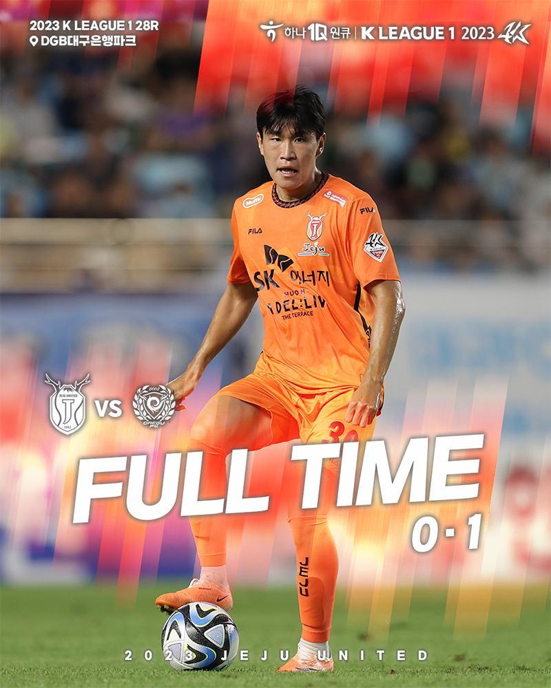 제주는 8월 26일(토) 오후 7시 DGB대구은행파크에서 열린 하나원큐 K리그1 2023 28라운드 원정경기에서 0-1로 패했다.