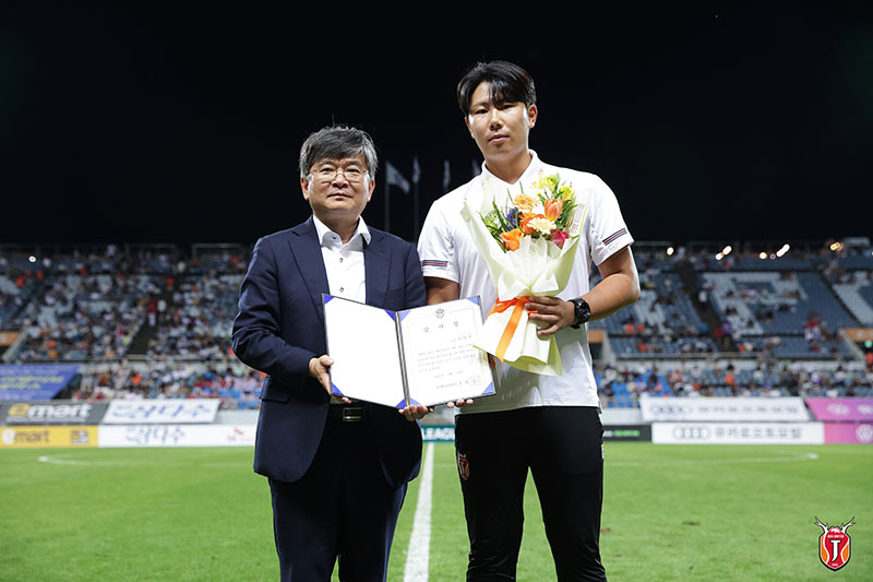 제주 구단에서도 이건우 코치의 선행을 치하하는 뜻깊은 자리를 마련했다. 9월 3일(일) 제주월드컵경기장에서 열린 하나원큐 K리그1 2023 29라운드 전북 현대와의 홈 경기 하프타임에 경기장을 찾아준 팬들 앞에서 이건우 코치에게 감사장 수여하는 시간을 가졌다. 구창용 제주유나이티드 대표이사가 직접 감사장을 전달했으며 사연을 들은 관중들은 뜨거운 박수를 보냈다.