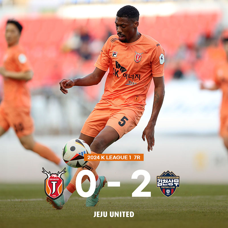 제주는 13일(토) 오후 4시 30분 제주월드컵경기장에서 열린 김천과 하나은행 K리그1 2024 7라운드 홈 경기에서 0-2로 패했다.