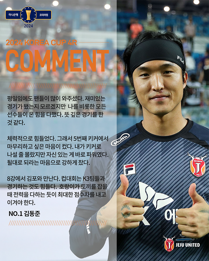 제주유나이티드(이하 제주)가 대전하나시티즌과 승부차기 11번째 키커까지 가는 대혈투 끝에 간신히 웃었다. 제주의 코리아컵 8강행을 이끈 건 골키퍼 김동준의 활약을 빼 놓을 수 없다.