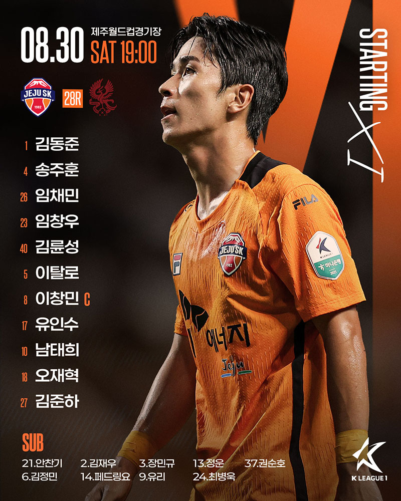 홈팀 제주SK는 3-4-3 포메이션을 가동했다. 남태희-오재혁-김준하, 김륜성-이탈로-이창민-유인수, 송주훈-임채민-임창우, 김동준(GK)이 선발 출전했다.