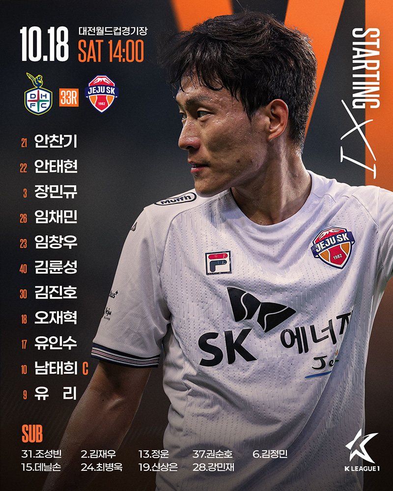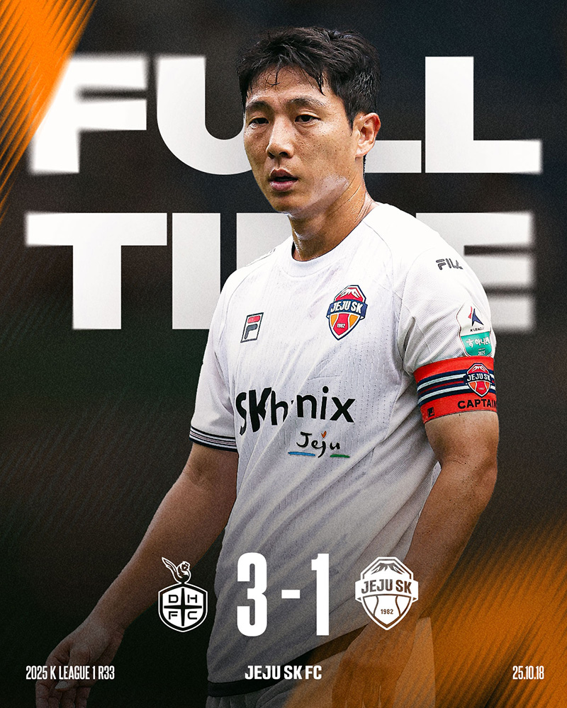 제주SK는 10월 18일(토) 오후 2시 대전월드컵경기장에서 열린 대전하나시티즌과의 하나은행 K리그1 2025 32라운드 원정 경기에서 1-3으로 패배했다.
