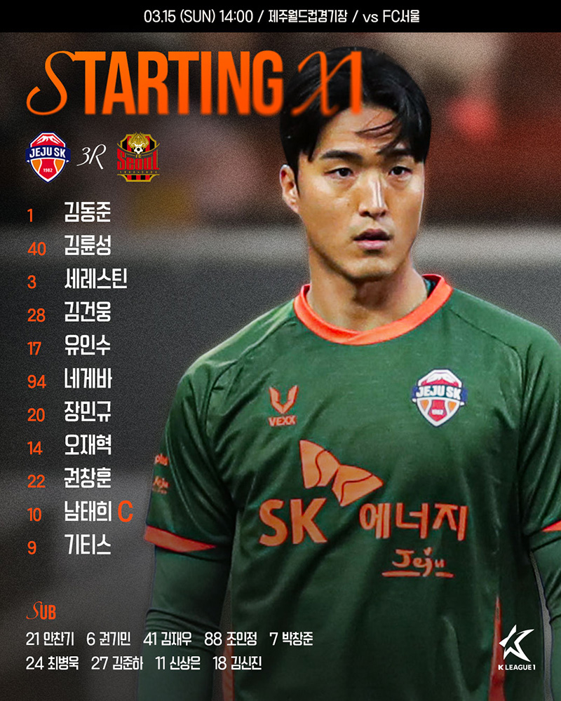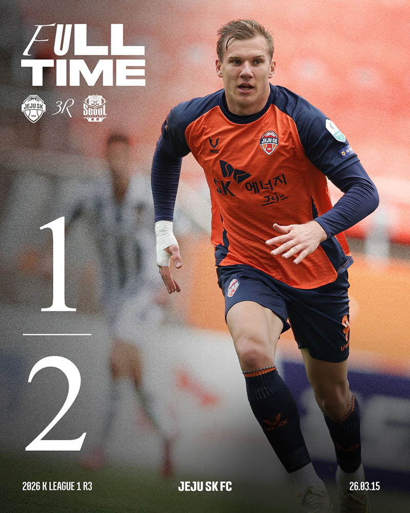 제주SK는 3월 15일(일) 오후 2시 제주월드컵경기장에서 열린 서울과의 하나은행 K리그1 2026 3라운드 홈 경기에서 1-2로 패했다. 후반 43분 최병욱이 동점골이자 K리그1 데뷔골을 터트렸지만 아쉽게도 경기 막판 실점을 허용하고 말았다.