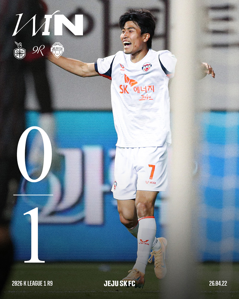 제주SK는 4월 22일(수) 오후 7시 대전월드컵경기장에서 열린 대전하나시티즌과의 하나은행 K리그1 2026 9라운드 원정경기에서 전반 44분 박창준의 선제 결승골이자 제주SK 데뷔골로 1-0 승리를 거뒀다.