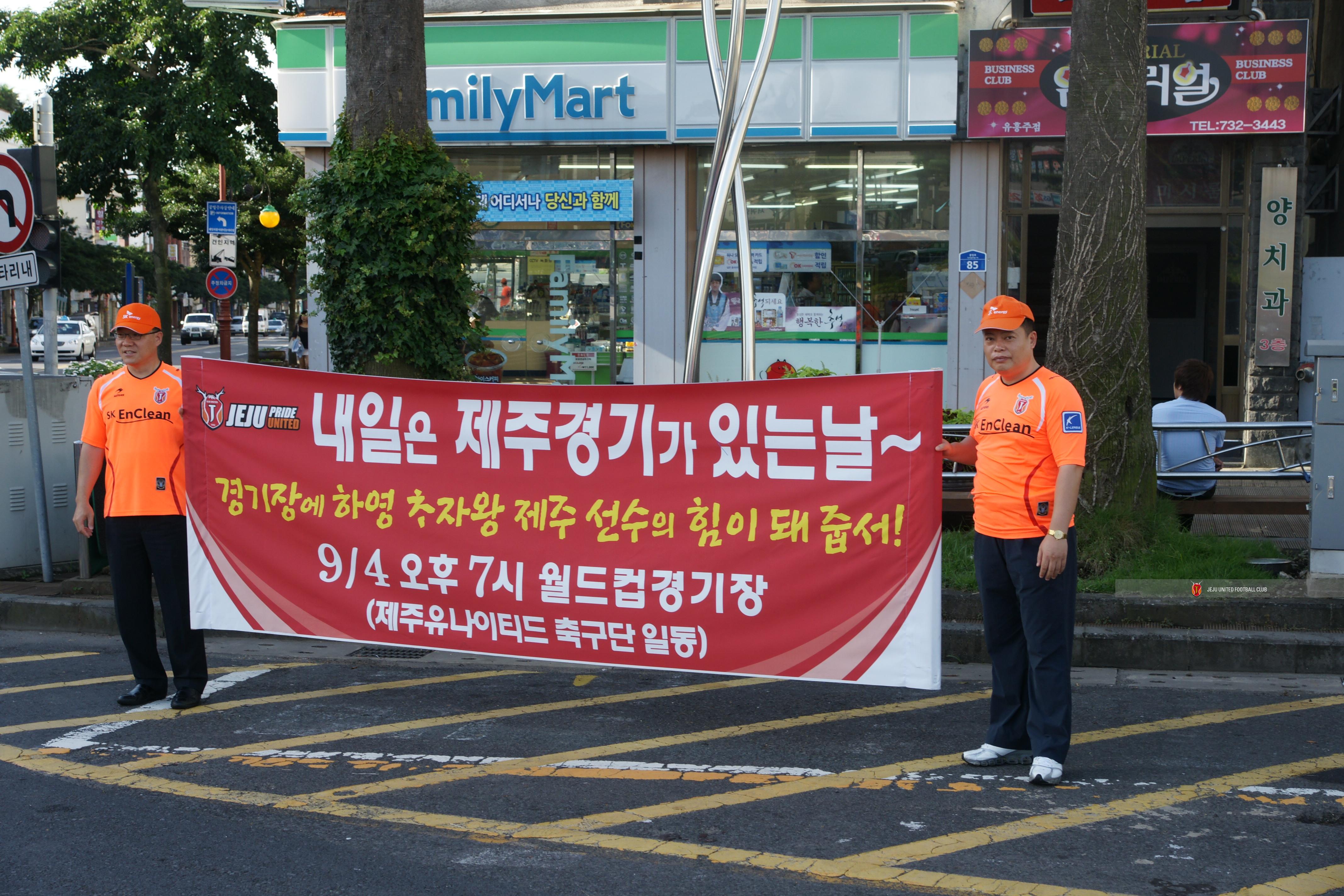 서귀포시 일호광장 에서 홈경기 홍보하시는 국장님과 경영지원실장님
