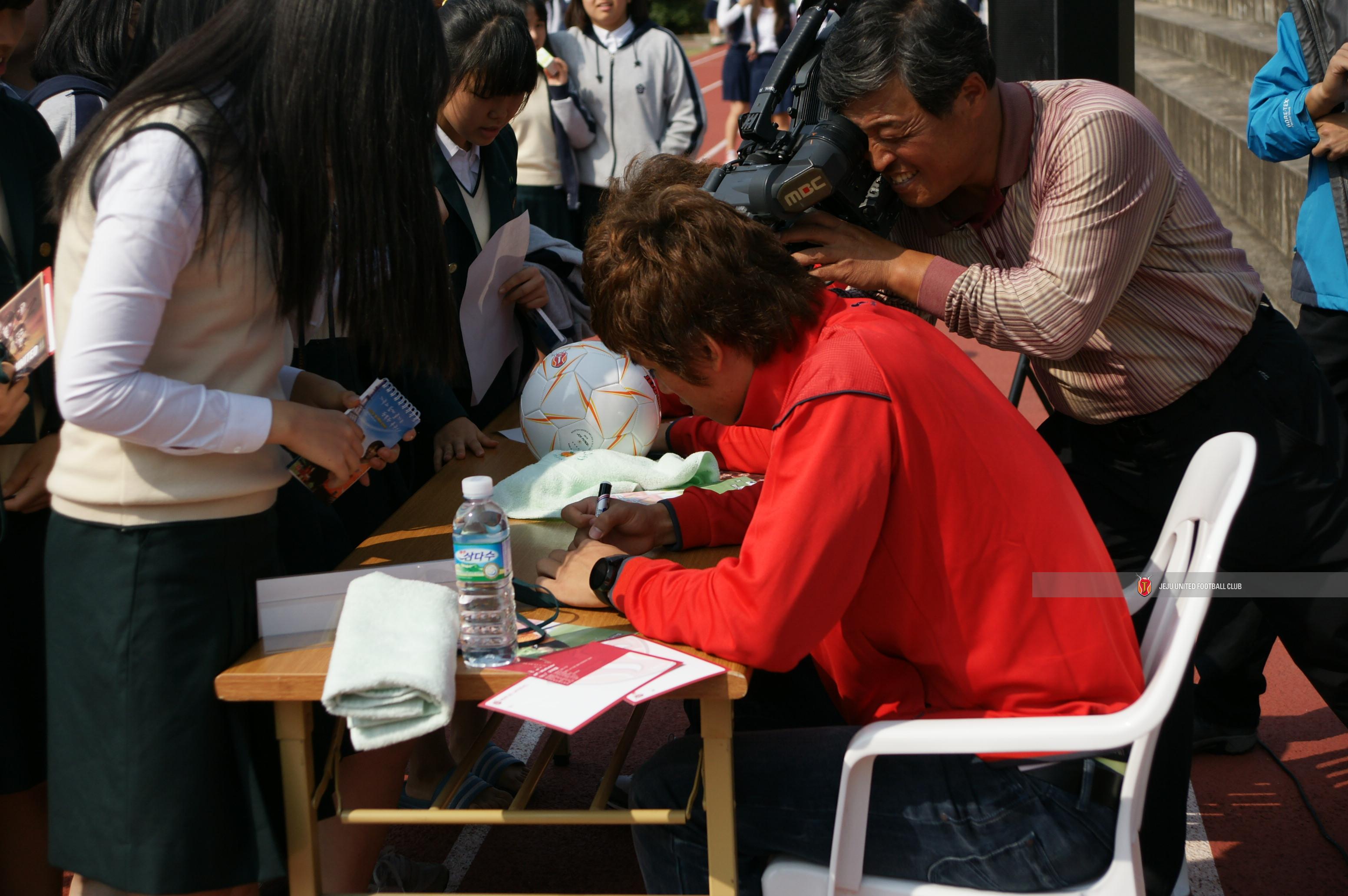 학생들은 물론 언론사의 취재열기 또한 뜨거웠습니다. (제주여고 팬싸인회)