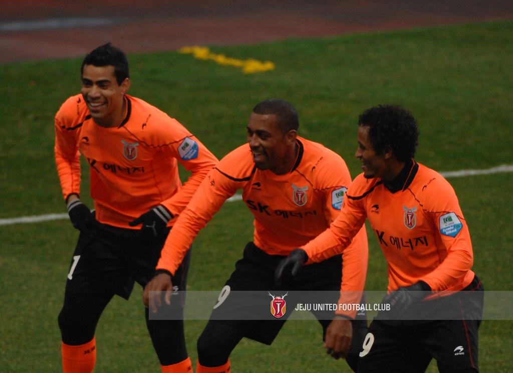자일 선수의 득점 이후 제주의 브라질 선수 3인조가 멋진 댄스 골세레머니를 보여줬습니다!^^