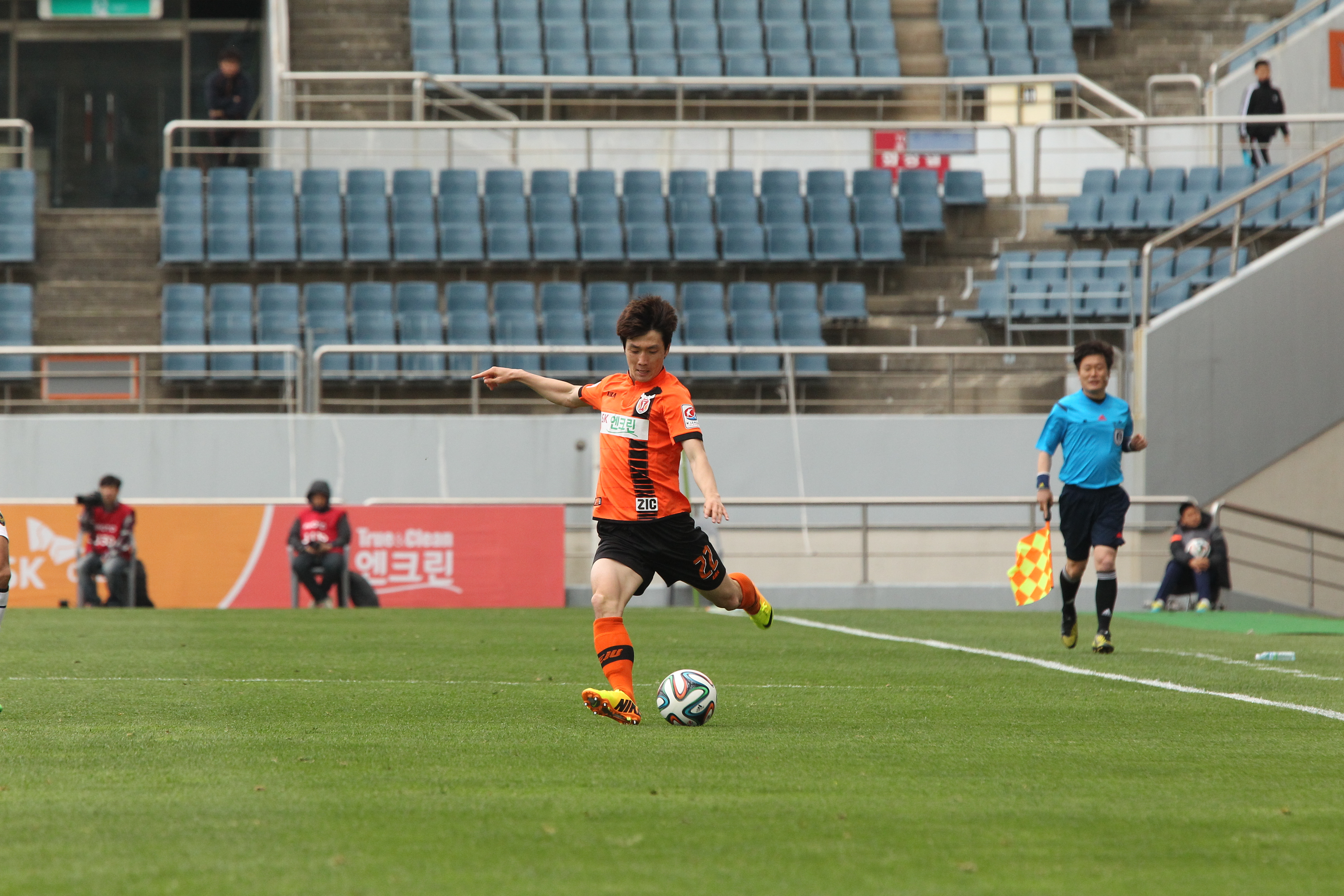 [인천전화보] 롱패스를 시도하는 김수범 선수