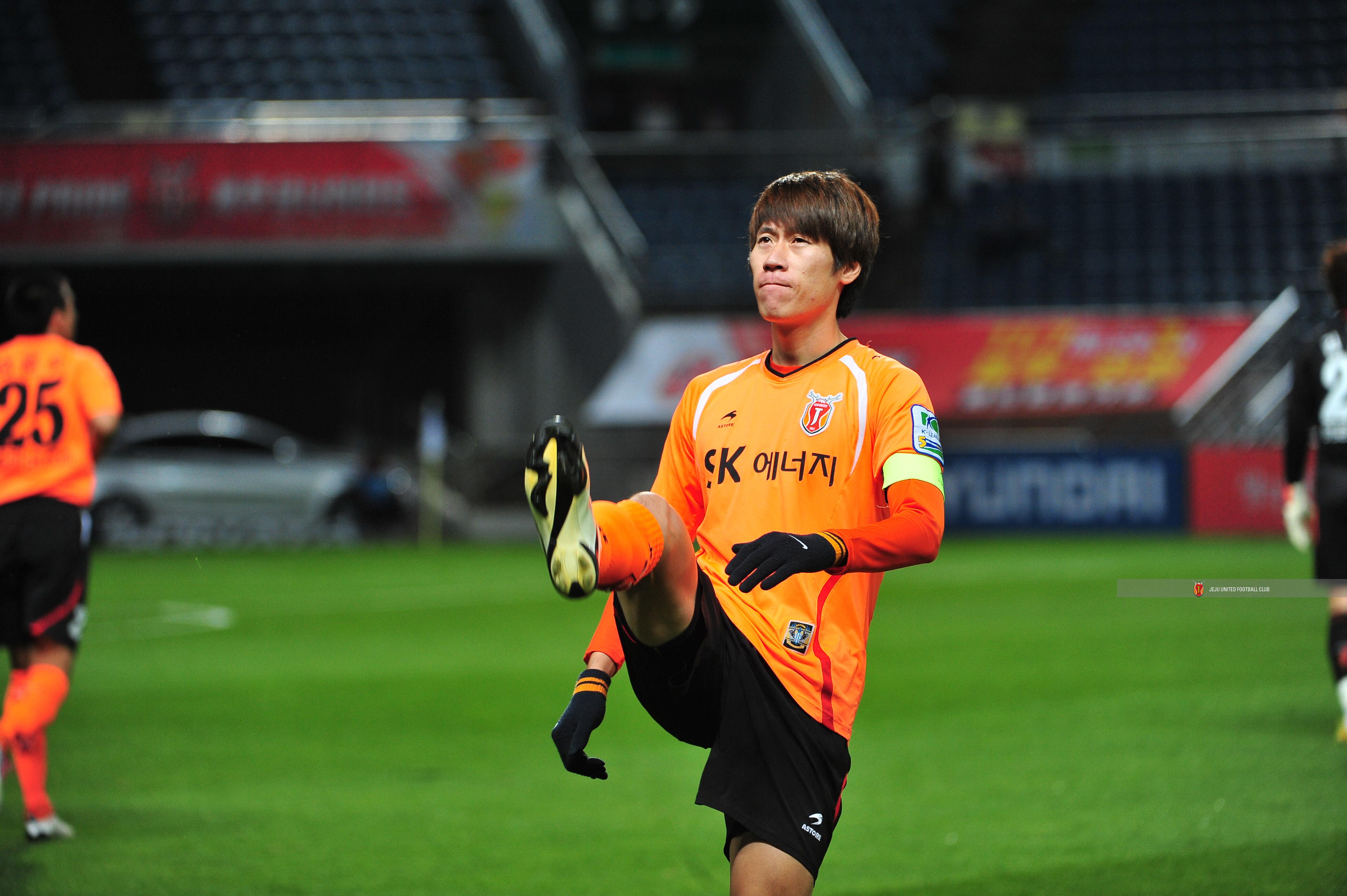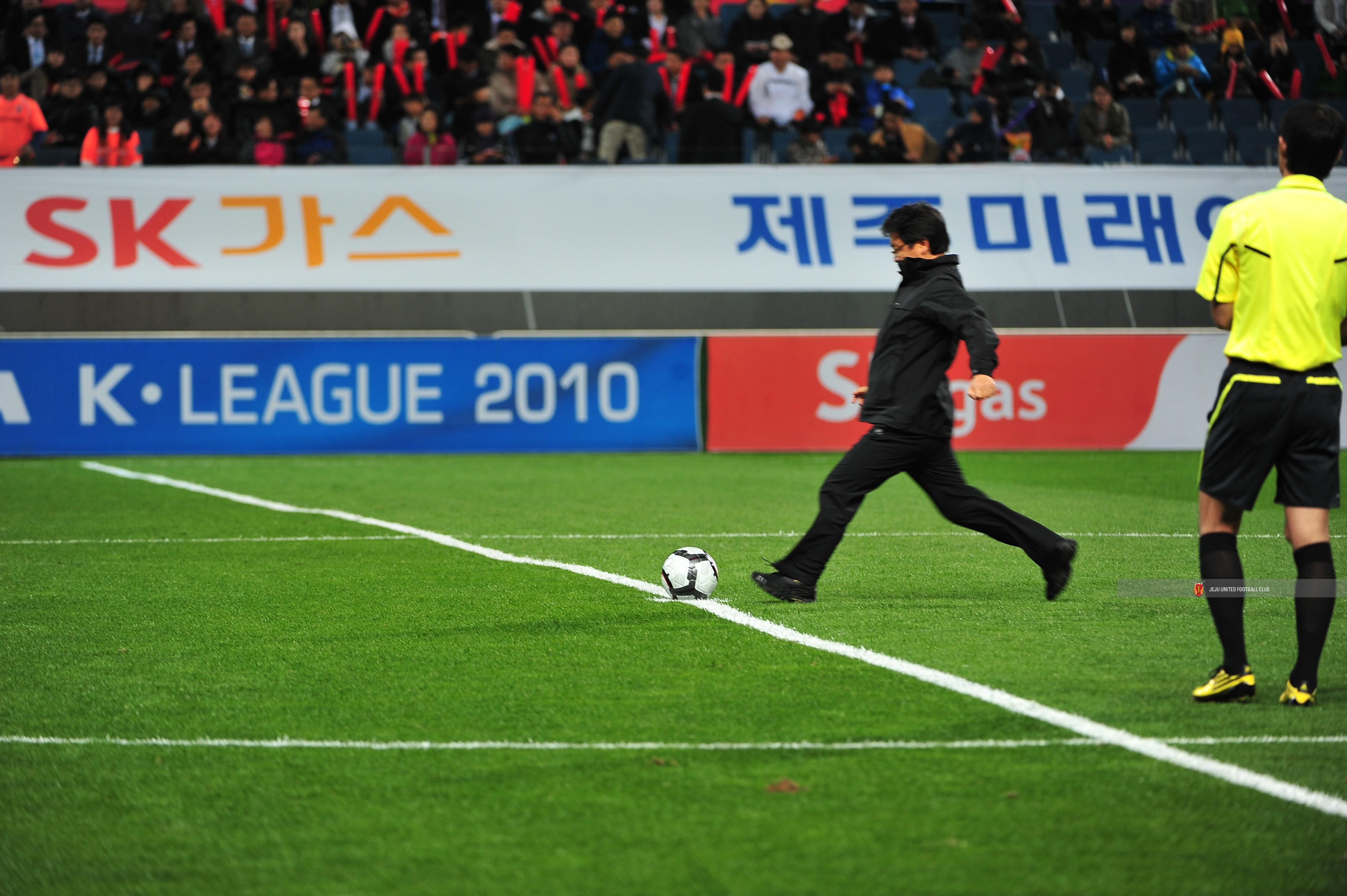 프로 선수 포즈로 시축하시는 고창후 서귀포시장님