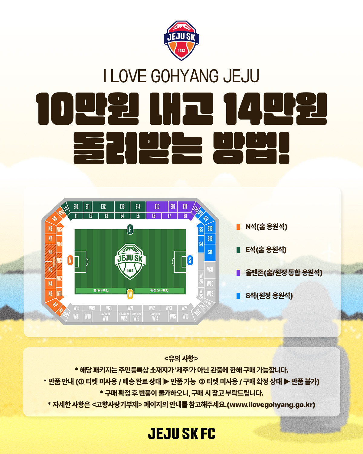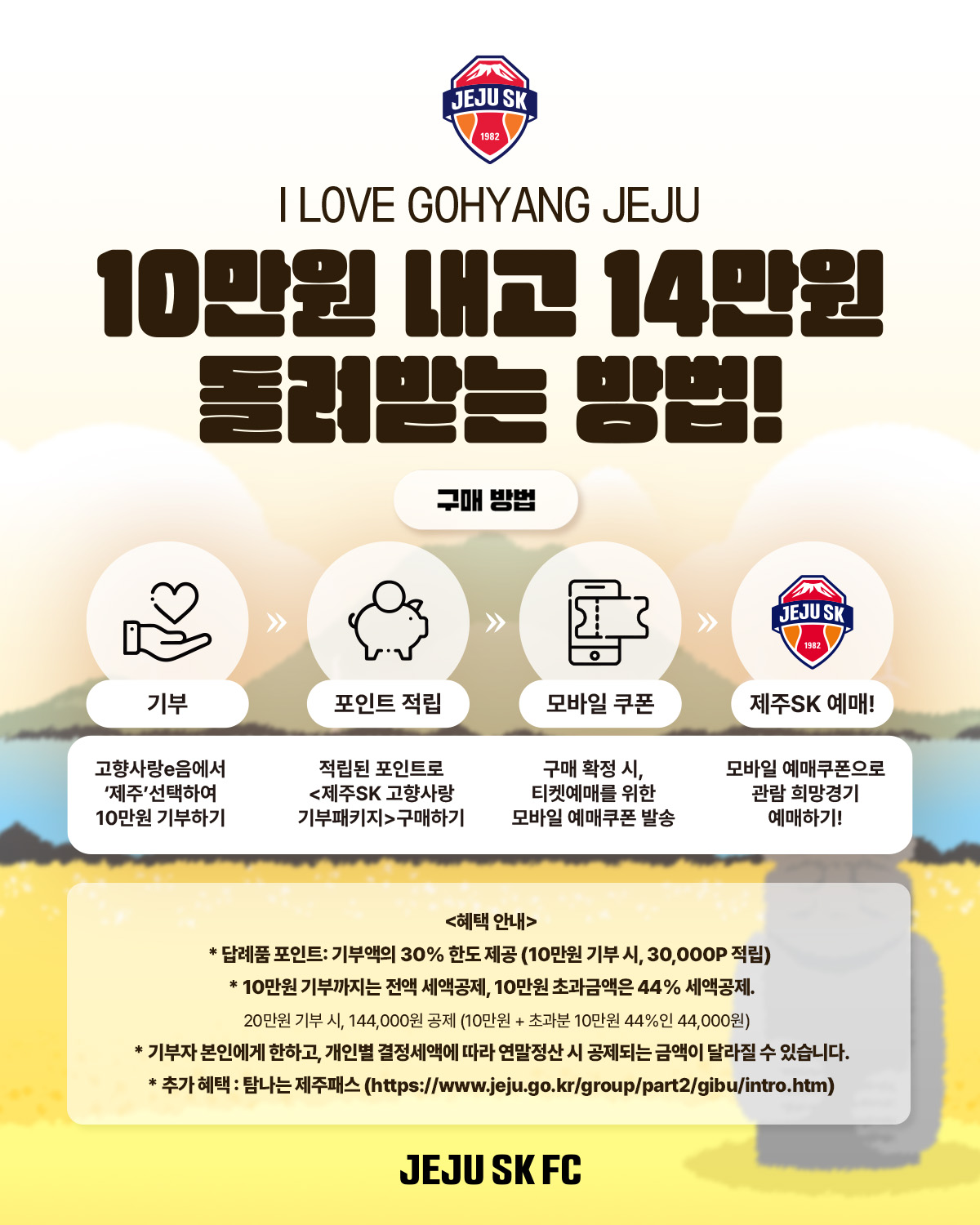 [제주도] 축구팬 집중! 10만원 내고 14만원 돌려받는 고향사랑기부제 패키지!